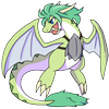 若草色の体色に深い緑の鬣、鋭い爪牙が目立つ。