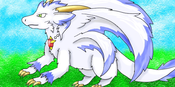 種族:ラーシャイン(光狼竜) 性別:オス 体長:8m 年齢:750歳(人間換算40歳程度)