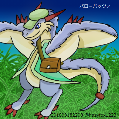 腕が翼と同化している翼竜の青年。ルパのウィドラ族とは少し異なり、腕の役割をしっかりと残しつつ翼が扱える。(腕に翼膜がある)